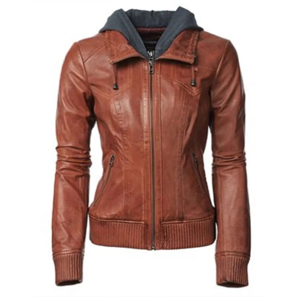 Arrow S02 Willa Holland Brown Leather Hooded Jacket