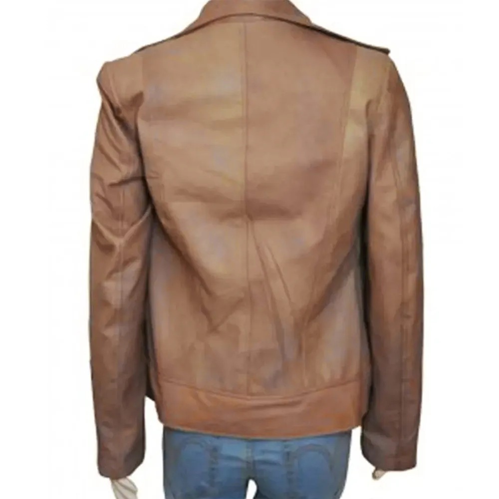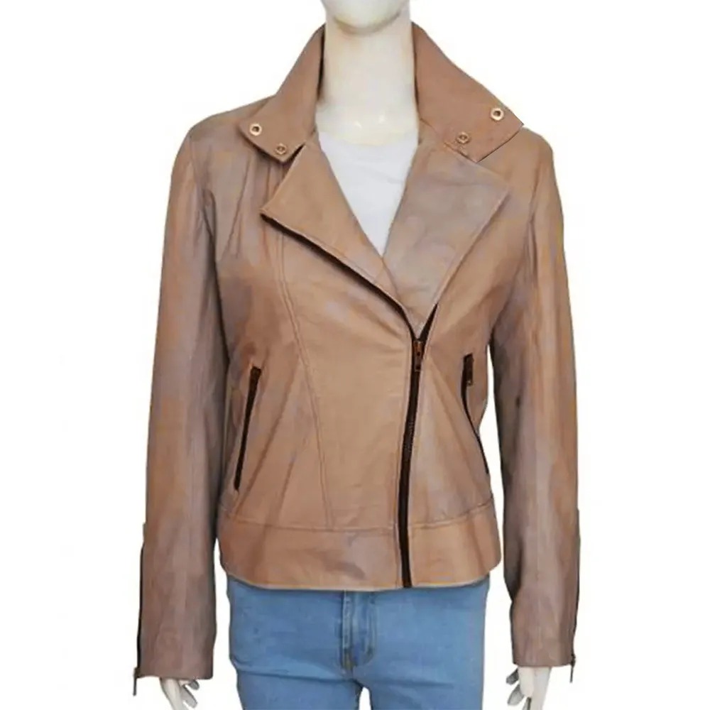 Arrow S04 Katie Cassidy Beige Leather Jacket