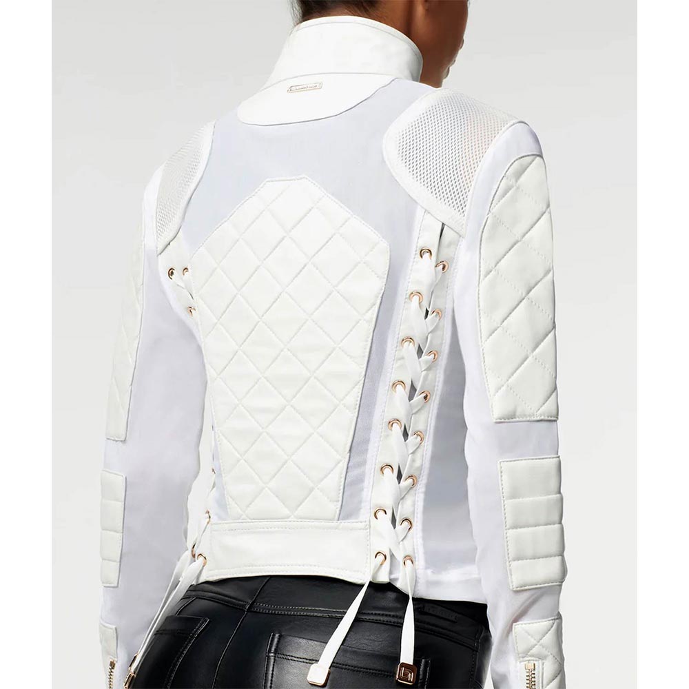 Bayley WWE Pay-Per-View Moto White Quilted Leather Jacket