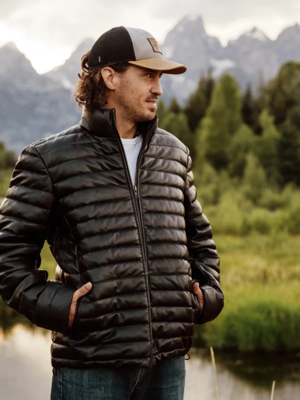 Want to read more about the benefits of soft leather like lambskin? Lambskin is an exceptionally wearable and soft leather. Its natural, lightweight layers give it a distinctive, velvety texture. Even though lambskin leather is thin and lightweight, it still does a good job of keeping out the cold, making it an ideal material for a leather down jacket. Because of its delicate structure, lambskin is treated less harshly in production than cowhide and requires more hand manipulation. This often results in lambskin being more expensive than cowhide, which is why it’s generally reserved for premium leather products like our Bridger Leather Down Jacket.