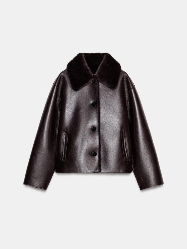 REVERSIBLE DOUBLE FACED FAUX LEATHER JACKET